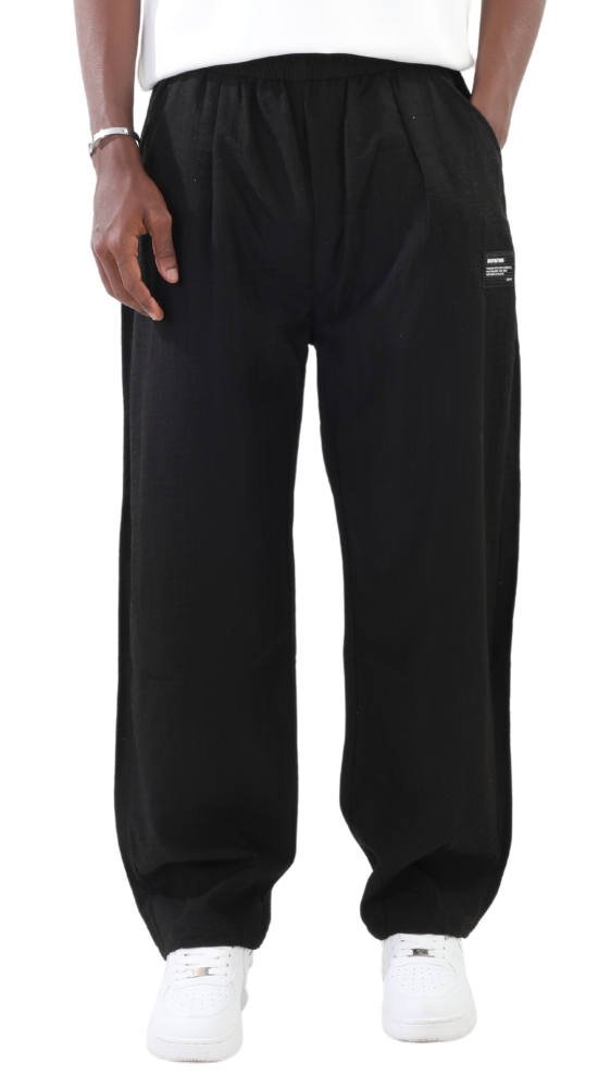 بنطال رياضي رجالي اسود فضفاض - خصر قابل للتعديل