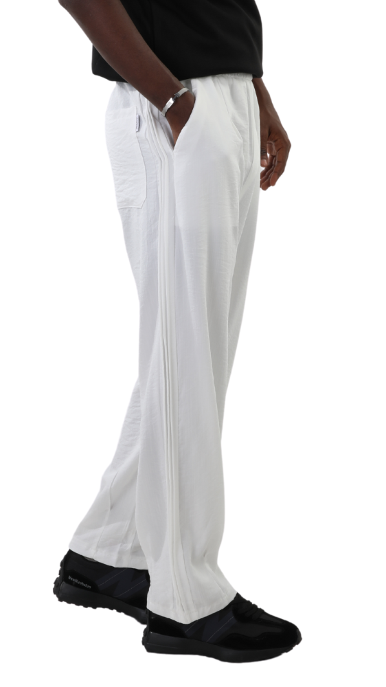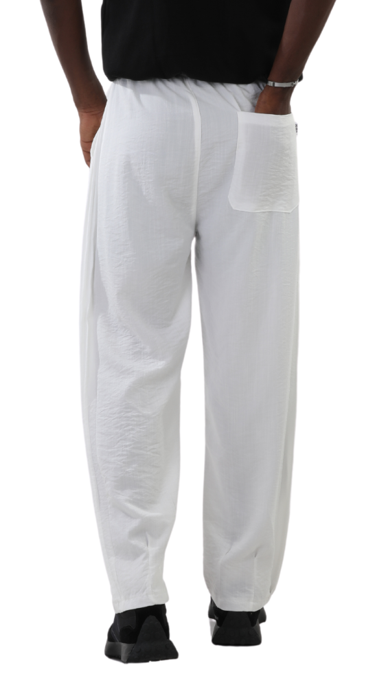 بنطال رياضي رجالي ابيض فضفاض - خصر قابل للتعديل